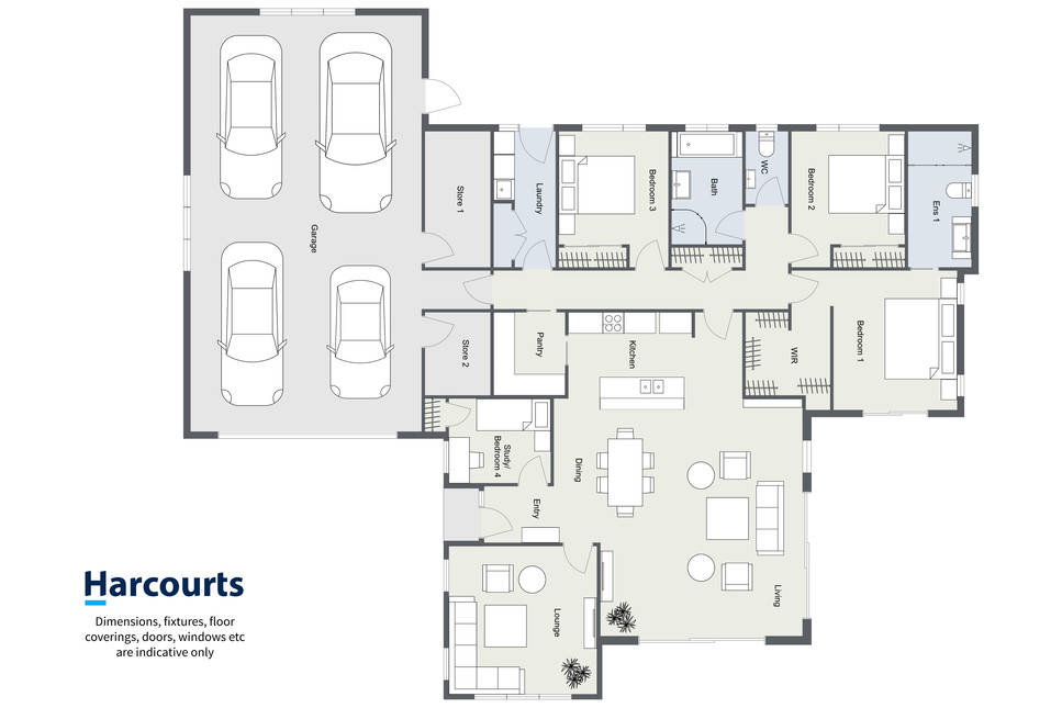 Now for the big draw card, the oversized 4-car garage with his-and-hers storage rooms and a convenient second entrance tucked around the back, big enough to park your caravan and boat.